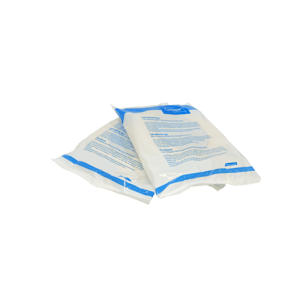 Bolsa con 1 unidad: La cinta se presenta en una bolsa que contiene una unidad de 19 mm x 50 m, adecuada para múltiples ciclos de esterilización.